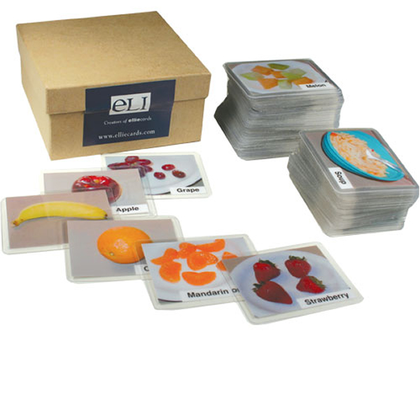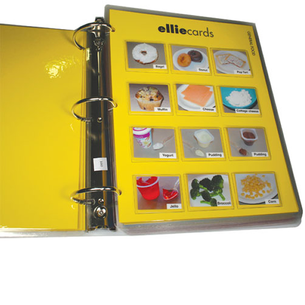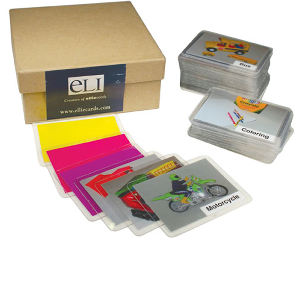 Ellie CardsA great tool for facilitating communication with children with autism, as well as other language delays and disorders. The Ellie Cards are small laminated photographs of foods and toys commonly used by children and their caregivers. These cards are used for children who are at a concrete level of using actual photos for communication. Choose Toys & Colors (72 cards), Food & Snacks (120 cards), both sets of cards (192 cards) or a Complete Package which includes all 192 laminated cards with Velcro in a binder with colored-coded pages and a choice board.